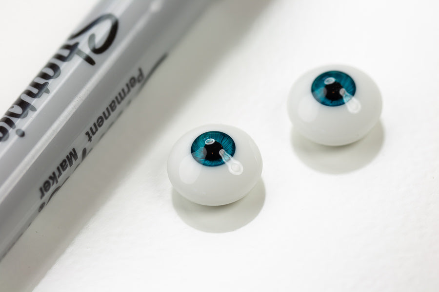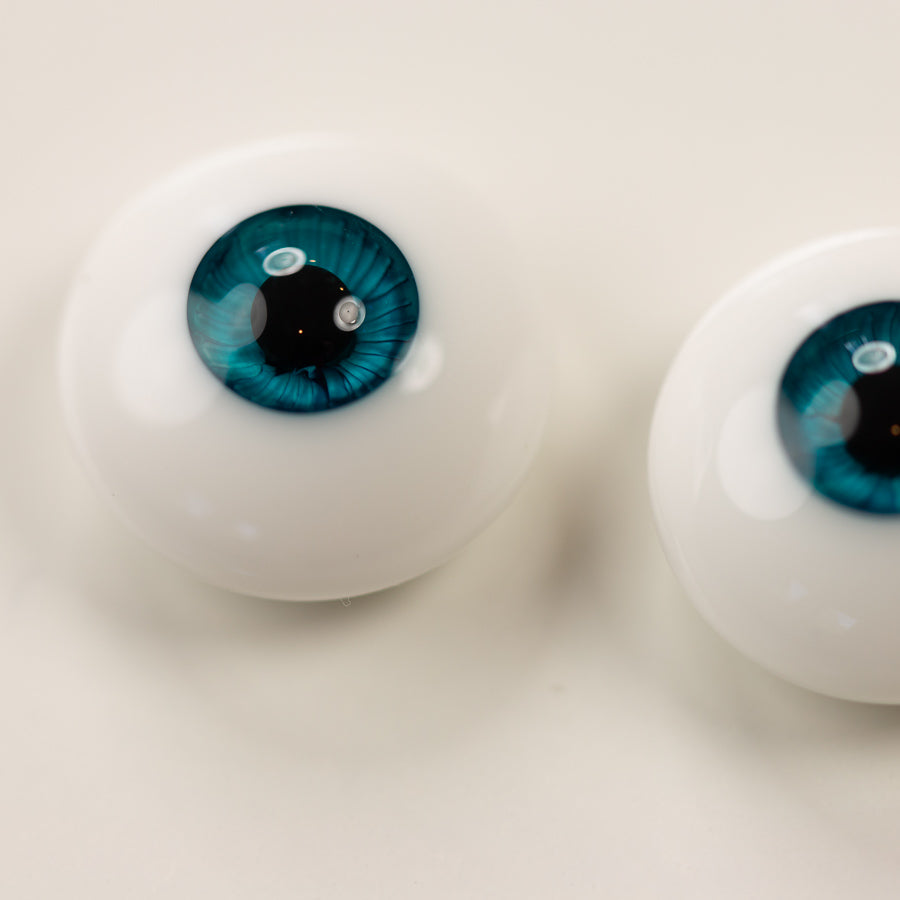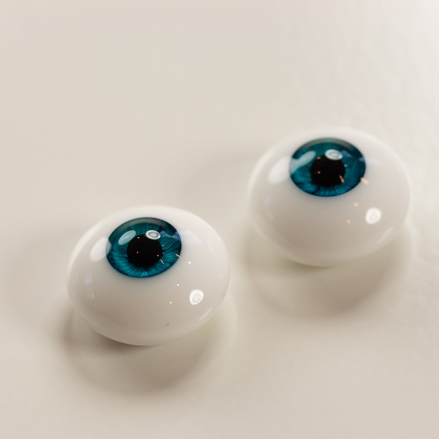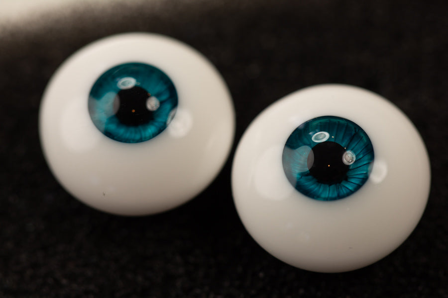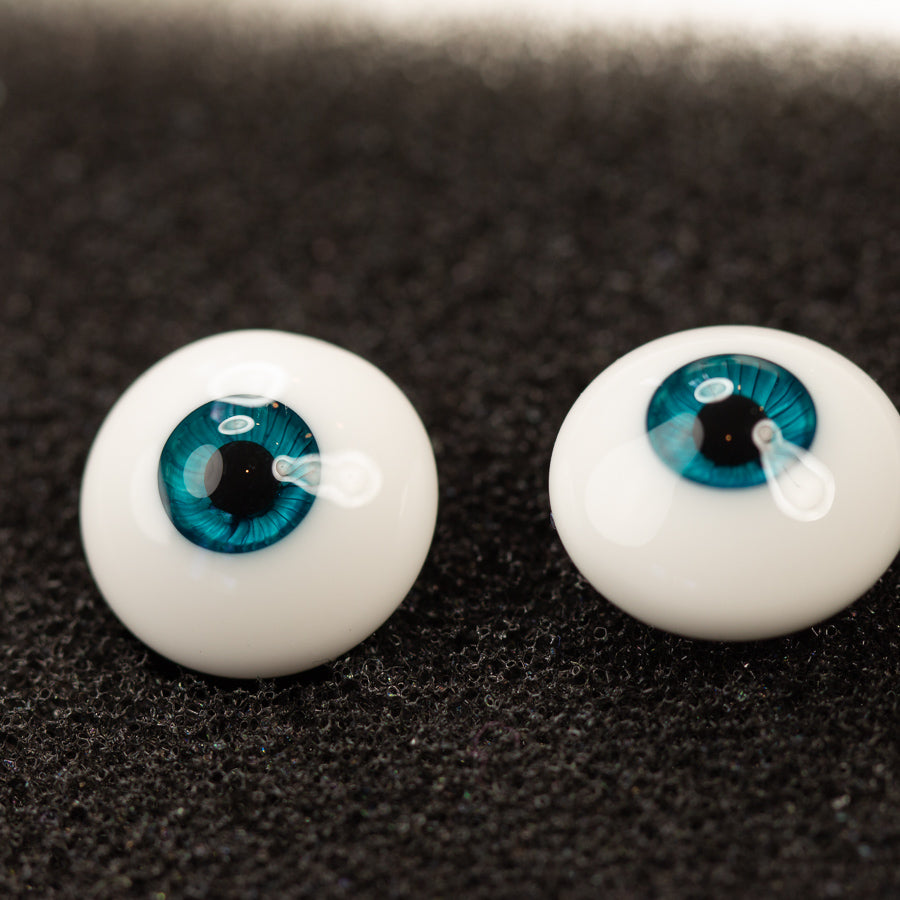 These eyes are in Perfect Teal, which is a medium-toned green-blue. These eyes have a small iris and low dome.