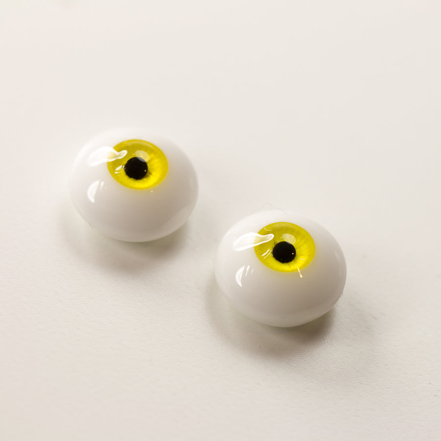 This OOAK color was accidentally made due to a little chemistry mistake. The result was a very, very bright yellow! Not your every day eyes, and one of a kind because I haven't been able to replicate this color yet. It's quite intense, and nearly seems to glow!